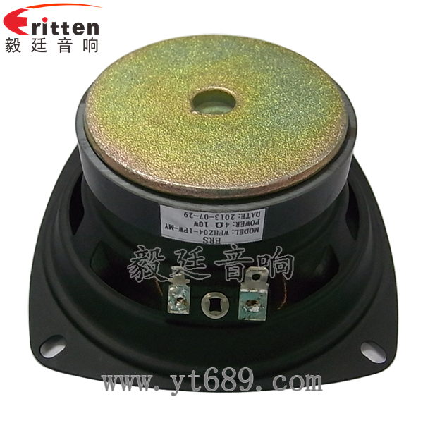 4寸蘋果形鐵盆架19芯泡邊紙盆帶高音杯鐵氧體外磁喇叭,采用的是大眾形、普通形的結構設計,方便與各類音箱的安裝。