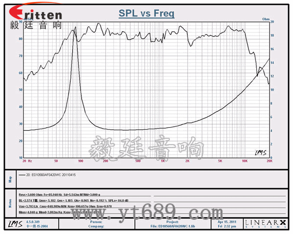 此款優異用于4寸20W多媒體喇叭,汽車音響單元上,靈敏度85dB,低頻厚實、震感強,東莞毅廷音響研發團隊開發出外觀新穎,音質優美。