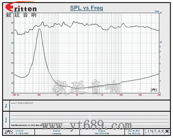 ★頻率范圍(freq response):550Hz~40KHz