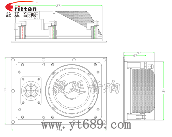 6.5寸方型外磁帶網罩全頻喇叭,采用的是精美的銅材質按壓式接線端子,配紅黑正負極,接線方便,音質細膩;