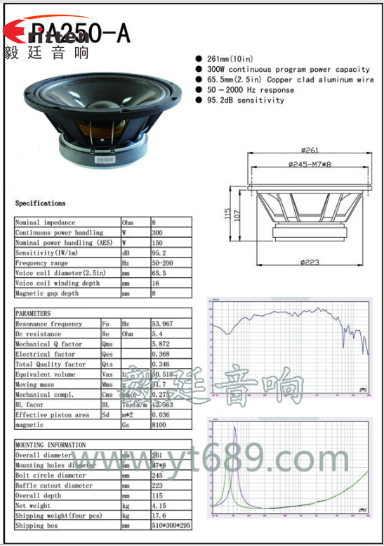 此款超級(jí)重低音揚(yáng)聲器,廣泛應(yīng)用10寸專業(yè)舞臺(tái)喇叭上,它的額定功率達(dá)到150W,超高靈敏度,超大功率,的防水防潮喇叭,聽(tīng)感厚實(shí),音色飽滿,客戶的首選產(chǎn)品。