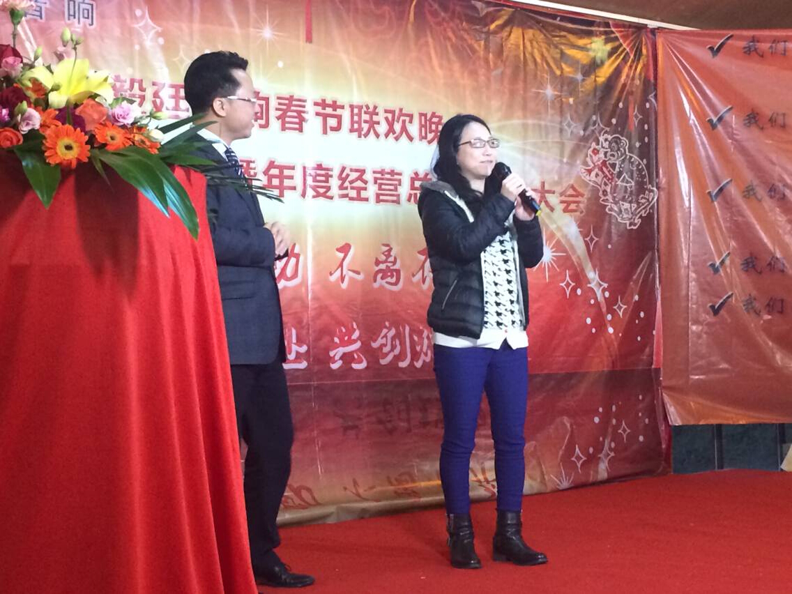頒完獎(jiǎng)后,由我們劉總發(fā)言勉勵(lì),給我們毅廷喇叭廠加油,以及公布我們毅廷海外部的蔡小姐的業(yè)績,600多萬,這是一個(gè)非常高的業(yè)績,感謝她,祝福她