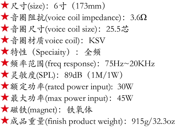 6寸防水喇叭,防水功能:6級防水 防熱,穩定保護 防濕防潮