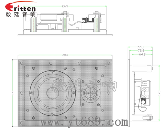 描述:方形鐵盆架橡膠邊PP盆外磁5.25寸2路墻壁喇叭;