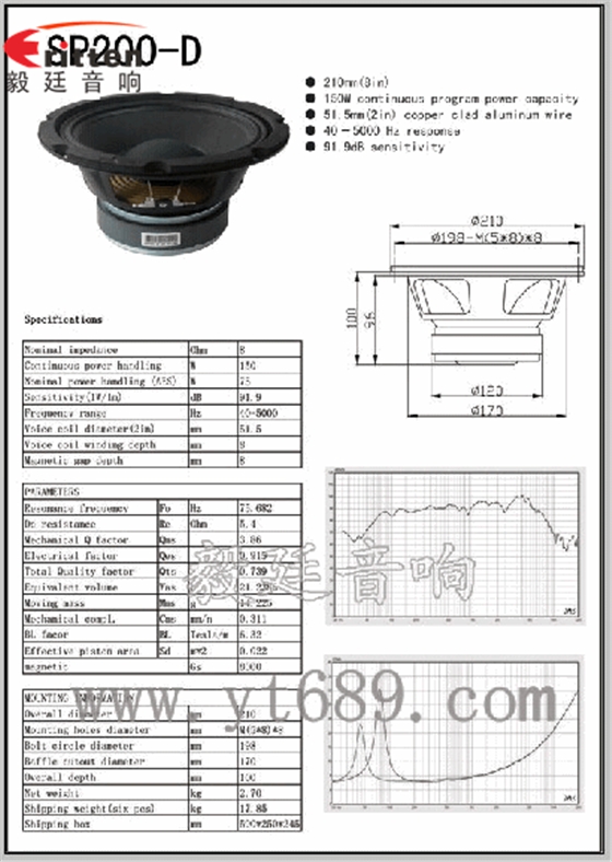 ★頻率范圍(freq response):76Hz~7KHz