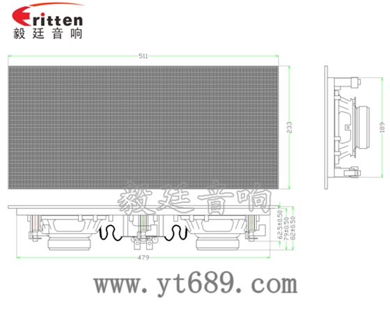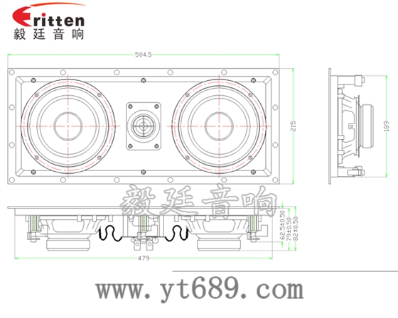 描述:方型鐵盆架橡膠邊PP盆25芯外磁雙低音6.5寸掛壁喇叭;