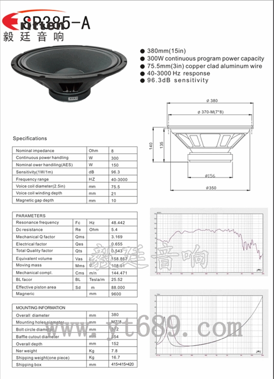 音圈尺寸(voice coil size):75芯
