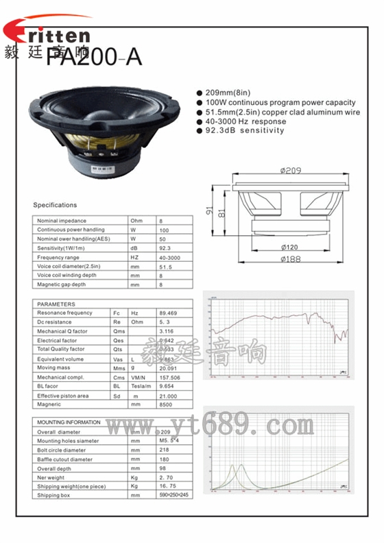 ★靈敏度(SPL):92dB(1M/1W)