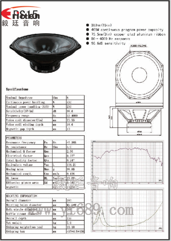 4寸15瓦外磁全頻喇叭