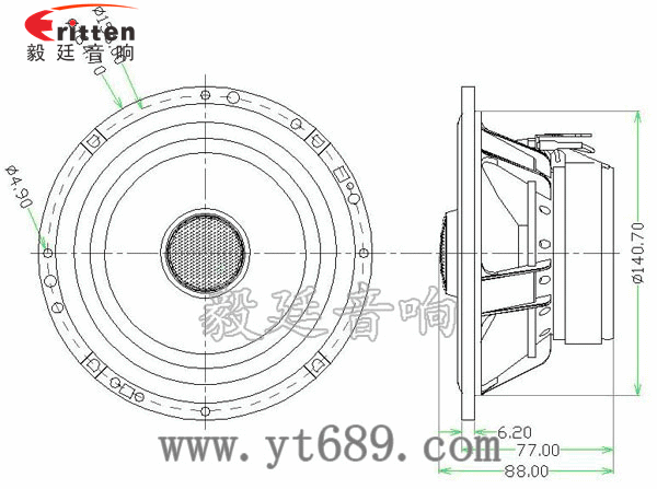 6.5寸圓形外磁塑膠盆架全頻喇叭,采用是高性能鐵氧體,使音色清晰、飽滿;