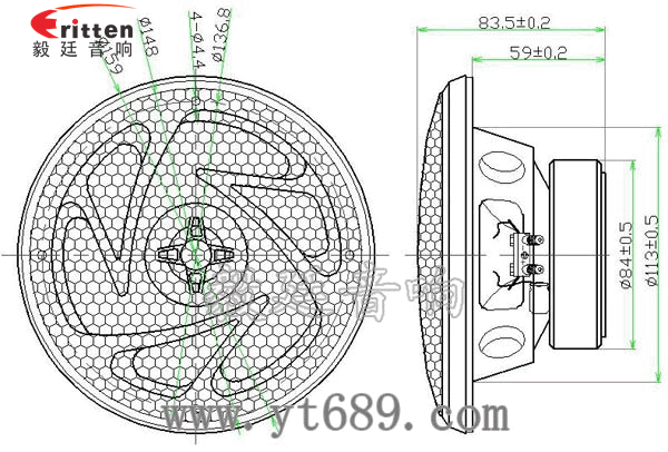 5.25寸異型鐵盆架全頻喇叭,采用了鐵氧體磁鋼,磁性強,音色清晰;