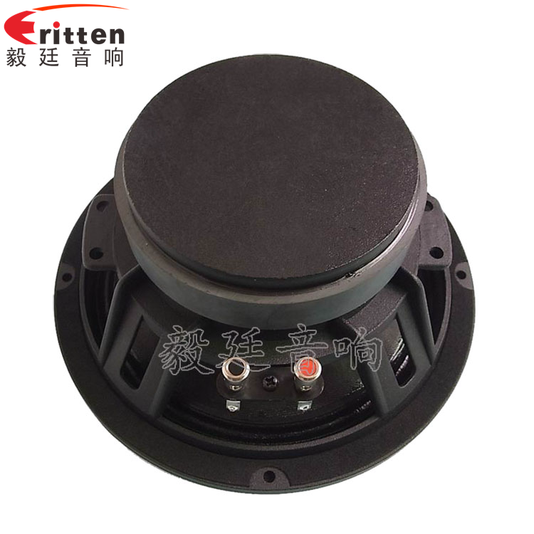 8寸圓形鋁盆架外磁中低音喇叭,使得盆架格外強韌穩固,銅材質鍍金按壓式接線端子,配上紅黑正負極之分,接線方便;