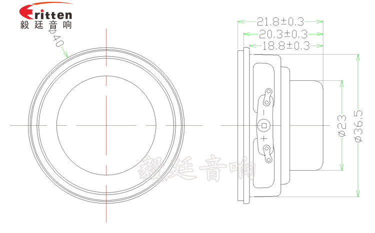 40mm圓形鐵盆架內磁全頻喇叭,采用了體積小磁性強的永久磁磁鋼,釹鐵硼,音色清晰。