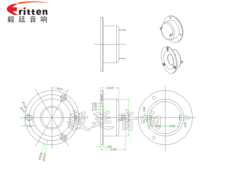 毅廷喇叭工程師研發(fā)出優(yōu)異用于70mm15W故事機(jī)中高音喇叭、學(xué)習(xí)機(jī)上,最大功率為30W,頻寬超寬,音質(zhì)清晰飽滿(mǎn),清脆悅耳。