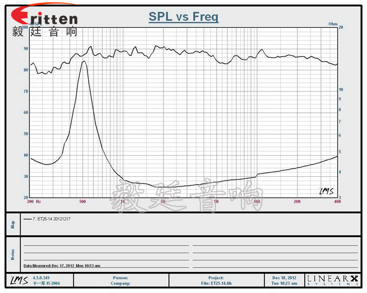 ★頻率范圍(freq response):550Hz~40KHz