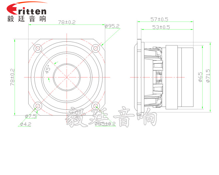 采用橡膠邊塑料盆架,25芯BASV音圈,體積小,功率大,聲音清脆,低頻強;