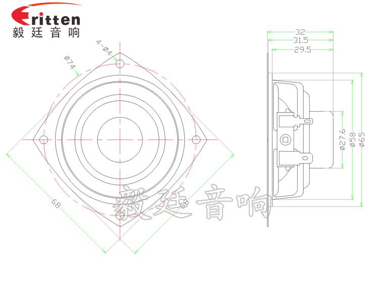 68mm異型鐵盆架內(nèi)磁全頻喇叭,采用了性價(jià)比高的鐵盆架,外觀漂亮,磁鋼采用了被譽(yù)為磁鋼之王的釹鐵硼,磁性強(qiáng),動(dòng)力足,永久不退磁;