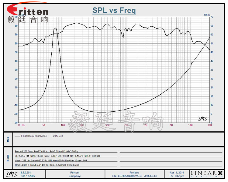 ★頻率范圍(freq response):77Hz~4KHz