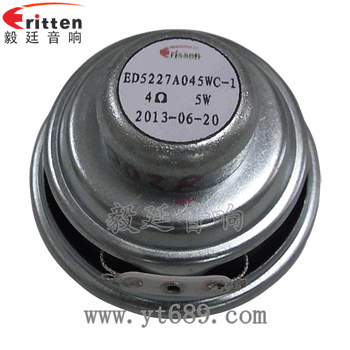 描述:圓形鐵盆架橡膠邊銀色防水鍋底內磁雙磁52mm 4Ω5w16芯全頻喇叭;