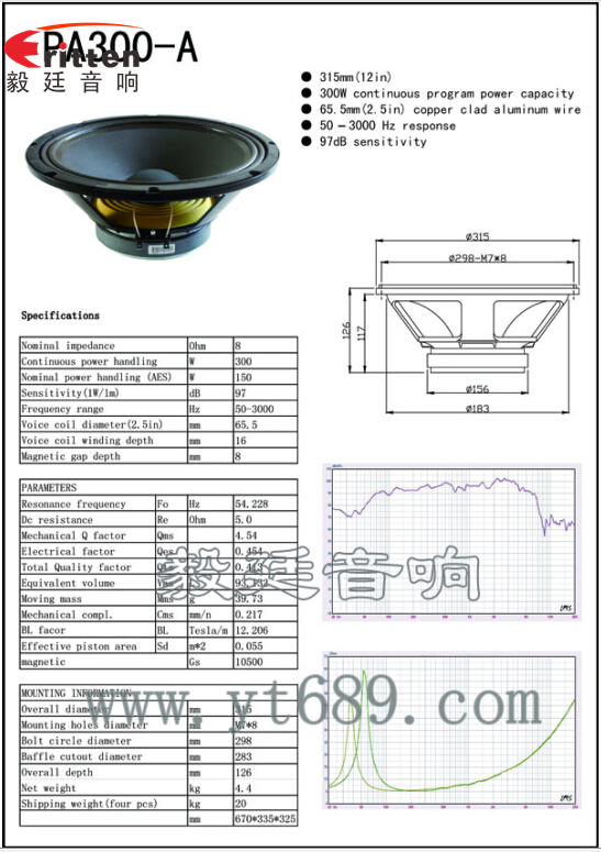 此款12寸150w低音喇叭,舞臺音箱的額定功率為150W,最大峰值300W,音域50Hz~3KHz,超重低音炮,下潛力深,東莞市毅廷音響科技有限公司嚴格貫徹質量讓您放心、服務讓您舒心、價格讓您動心。