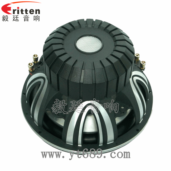 12寸圓形重低音喇叭,采用了高純度的鋁盆架,加強加寬壓鑄磨砂,承載著大型磁路和振動系統,保證了大功率工作時的穩定性;