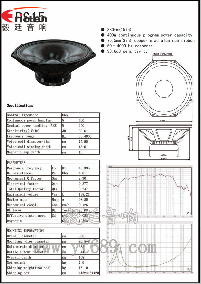 15寸異型鋁盆架外磁重低音喇叭,采用的是盆架以精鋼沖壓成型,涂覆黑色防氧化漆,設計精簡牢固穩(wěn)重實用。