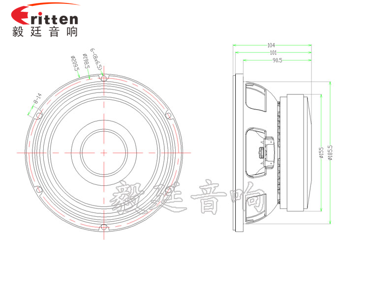 8寸圓形塑料盆架中低音喇叭,采用的是外磁,加厚高性能航天磁,音色飽滿、質(zhì)感強(qiáng);