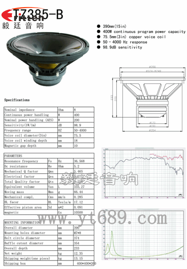 | 采用了布邊紙盆,75芯銅線音圈,進(jìn)口的紙漿熱壓成型的紙盆,表面經(jīng)過特殊的膠水處理,可以更好的防潮效果。